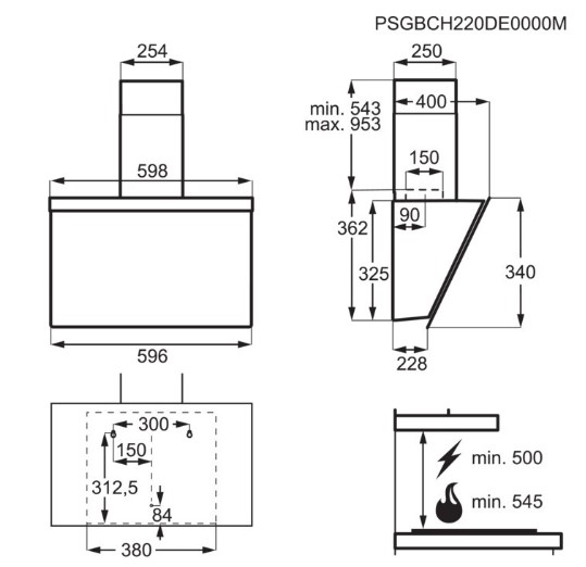 - Mindestabstand zum Gaskochfeld (cm): 54