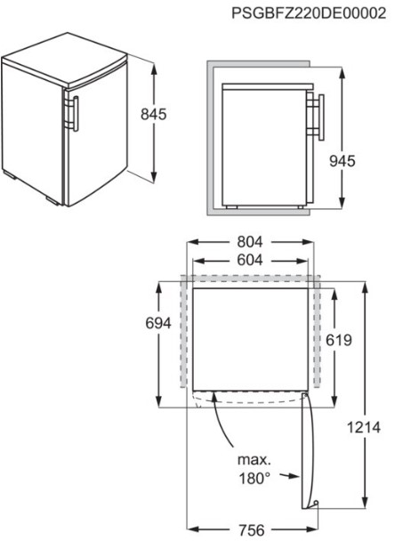 - Gerätemaße H / B / T in mm: 845 / 604 / 576