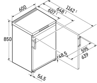 - Gerätemaße H / B / T in cm: 85 / 60 / 60,7