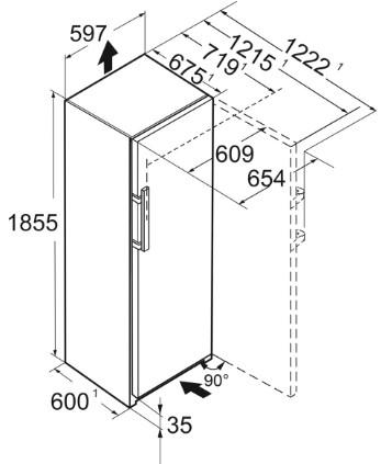 - Gerätemaße H / B / T in cm: 185,5 / 59,7 / 67,5