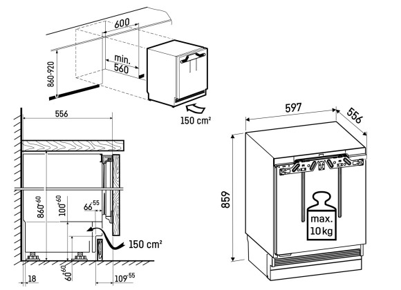 - Gerätemaße H / B / T in cm: 85,9 / 59,7 / 55,6