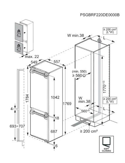 - Nischenmaß H / B / T in mm: 1780 / 560 / 550