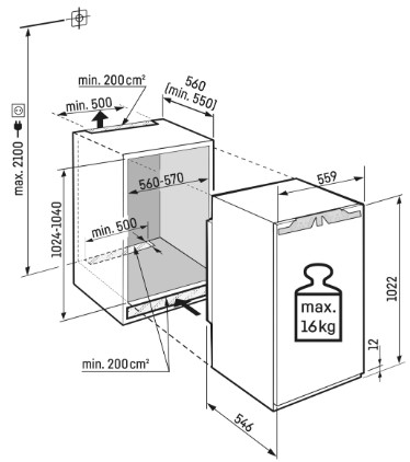 Nischenmaß H / B / T in cm: 102,4 - 104 / 56 – 57 / 55