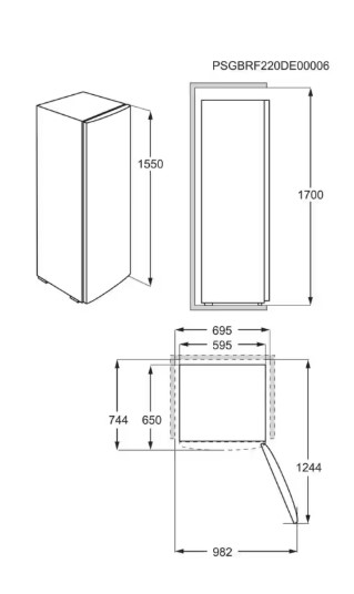 - Gerätemaße H / B / T in mm: 1550 / 595 / 667
