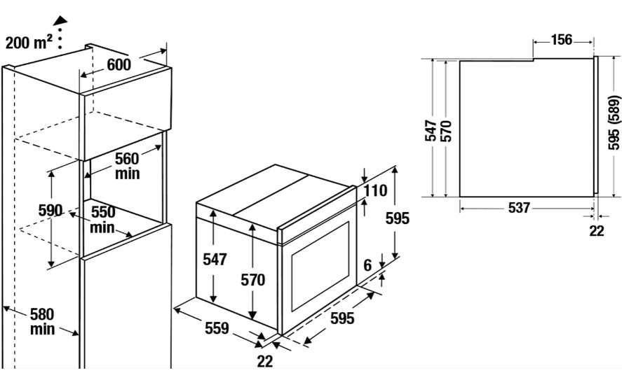 Gerätemaße in mm H / B / T: 595 x 595 x 559
