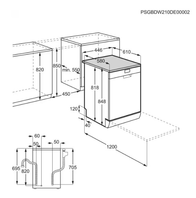 - Maße H / B / T in mm.: 850 / 446 / 615