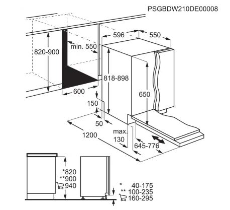 - Maße H / B / T in mm.: 818 / 569 / 550