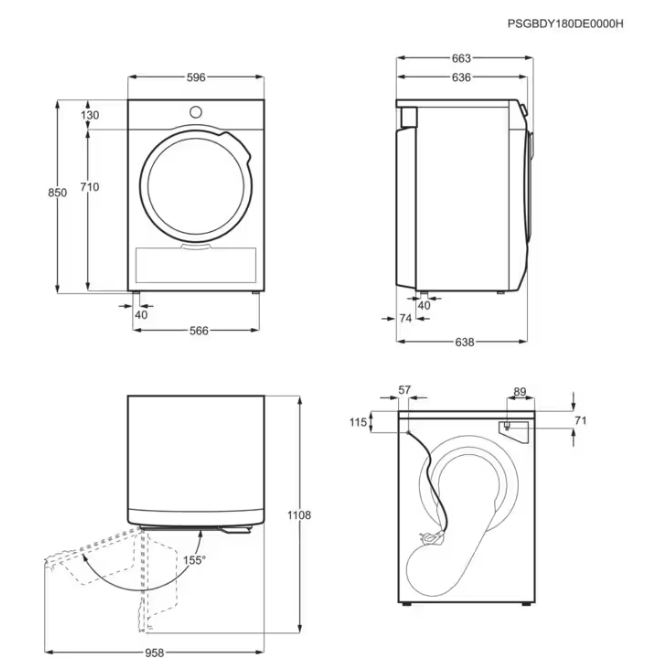 - Maße H / B / T in mm.: 850 / 596 / 663
