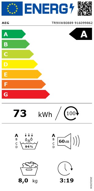 AEG TR9XW80889 Wärmepumpentrockner 8 Kg.
