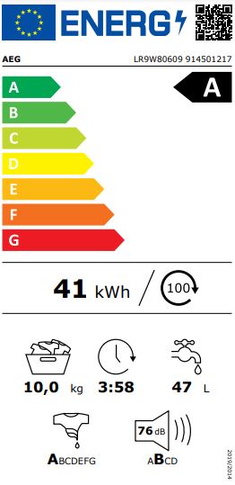 - Energieverbrauch in Kw/h pro 100 Waschzyklen.: 41