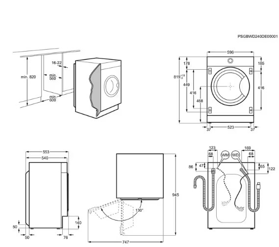 - Wasserverbrauch pro Betriebszyklus für Waschen und Trocknen in L: 60