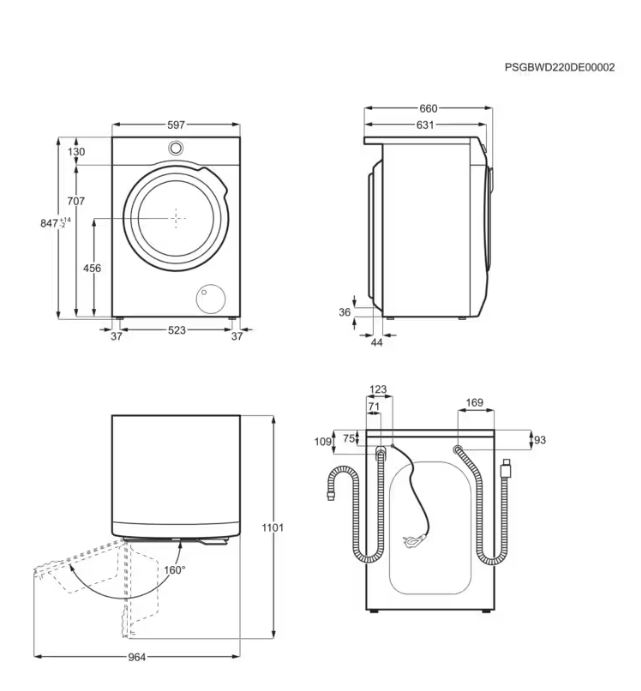 - Energieverbrauch pro 100 Zyklen für Waschen und Trocknen in Kw/h.: 265