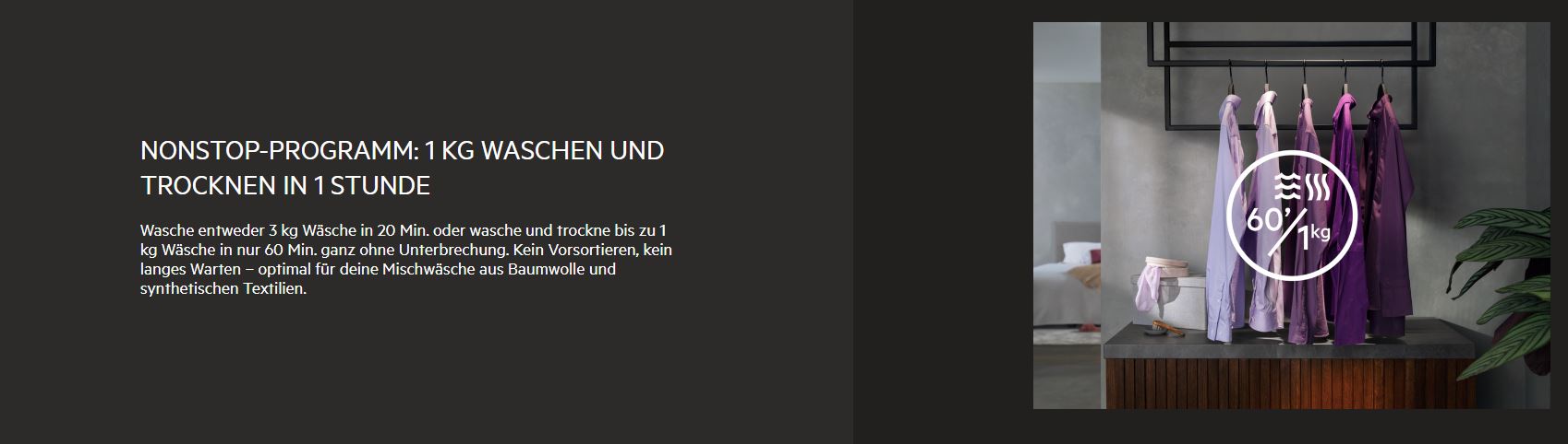 - Wasserverbrauch pro Zyklus für Waschen und Trocknen in L.: 62