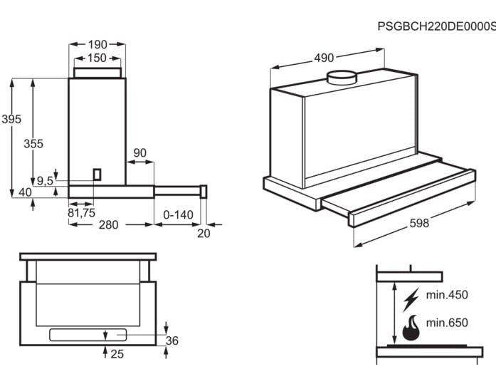 - Mindestabstand zum Elektrokochfeld (cm): 45