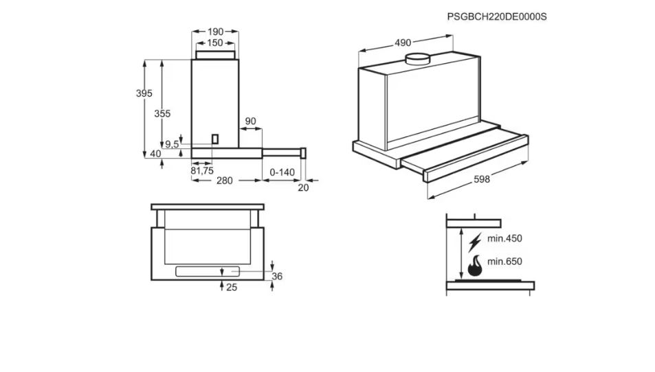 - Mindestabstand zum Elektrokochfeld (cm): 45