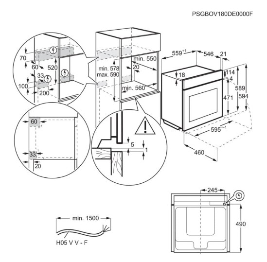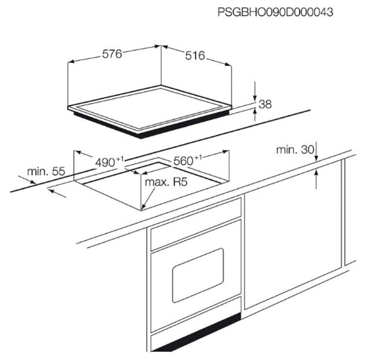 - Ausschnittmaß Breite x Tiefe in mm: 560 x 490