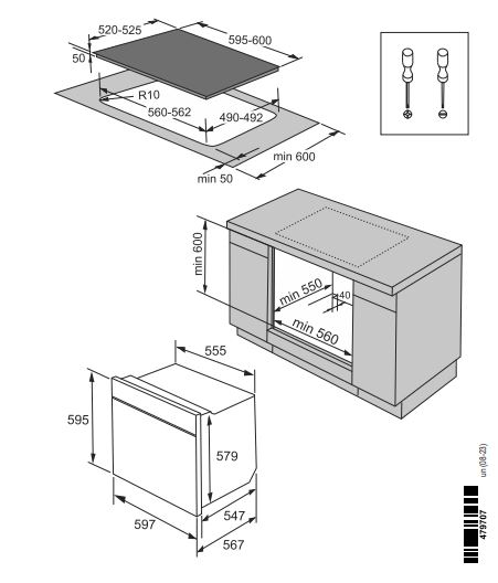 - Ausschnittmaß Breite x Tiefe in mm: 560 x 490