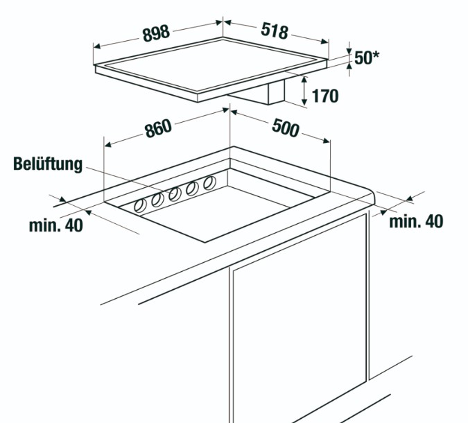 4 Kochzonen 210 x 190 mm / 2.100 W (3.700 W*)