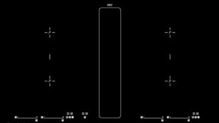 Brückenfunktion, rechte und linke Kochzonen jeweils zu einer Fläche zusammenschaltbar