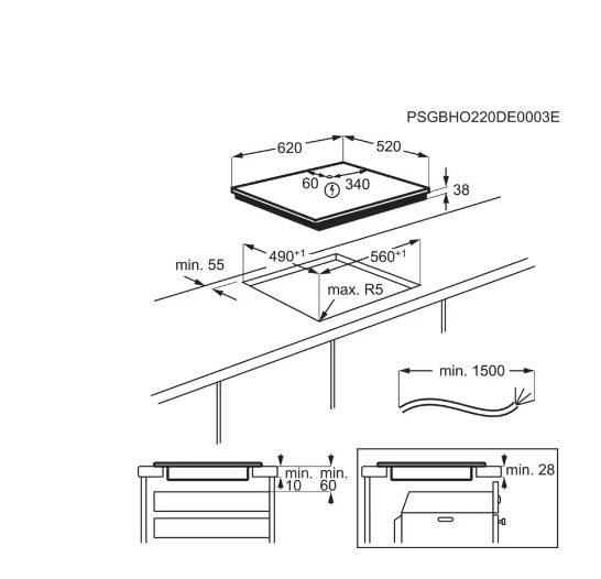 - Ausschnittmaß Breite x Tiefe in mm: 560 x 490