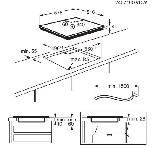 - Ausschnittmaß Breite x Tiefe in mm: 560 x 490
