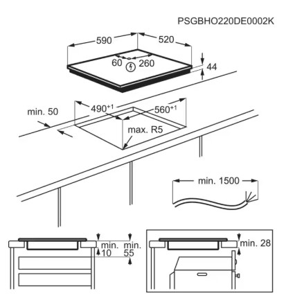 - Ausschnittmaß Breite x Tiefe in mm: 560 x 490