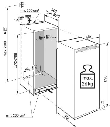 Gerätemaße H / B / T in cm: 177 / 55,9 / 54,6