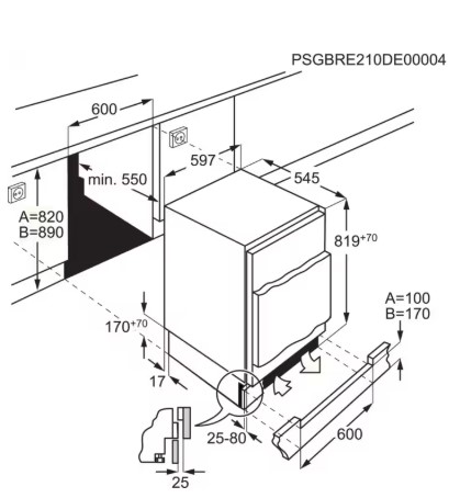 - Nischenmaß H / B / T in mm: 820 / 600 / 550