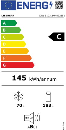 - Netto- Inhalt Kühlbereich in Liter: 183