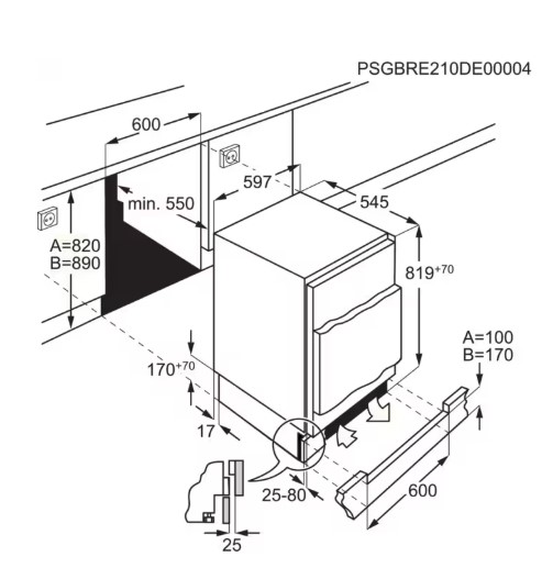- Nischenmaß H / B / T in mm: 820 / 600 / 550