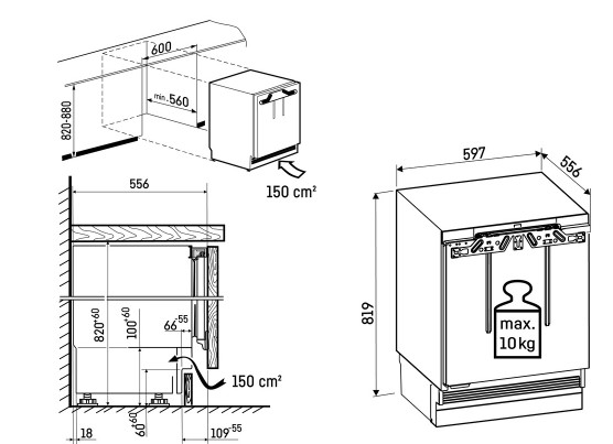 - Gerätemaße H / B / T in cm: 81,9 / 59,7 / 55,6