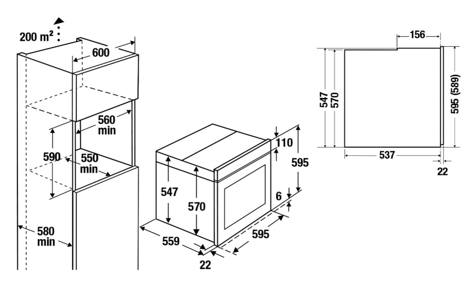 Gerätemaße in mm H / B / T: 595 x 595 x 559