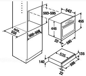 Nischenmaße B x H x T in mm: 560 / 595 / 550 inkl. 45 cm Kompaktgerät