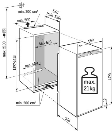 Nischenmaß H / B / T in cm.: 139,7 – 141,3 / 56-57 / 55