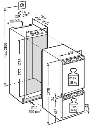 Nischenmaß H / B / T in cm.: 177,2 – 178,8 / 56-57 / 55