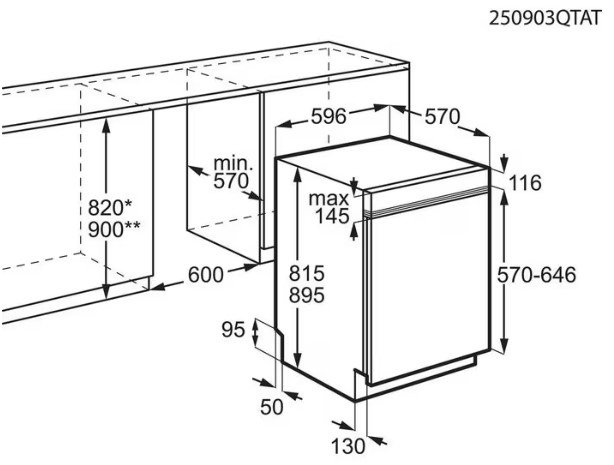 - Einbaumaße H / B / T in mm: 820 / 600 / 570
