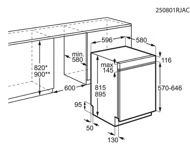 - Einbaumaße H / B / T in mm: 820 / 600 / 580