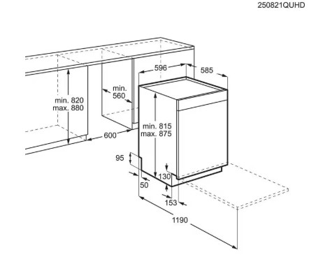 - Gerätemaße H / B / T in mm.: 815 / 596 / 580