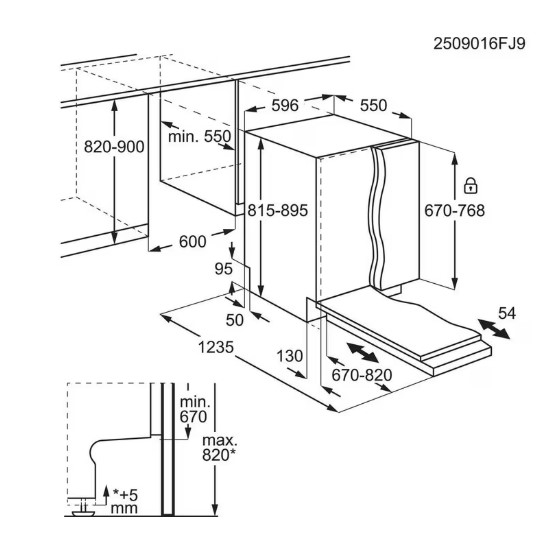 - Einbaumaße H / B / T in mm: 820 / 600 / 550