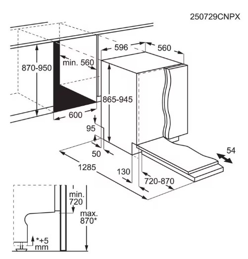- Einbaumaße H / B / T in mm: 870 / 600 / 560