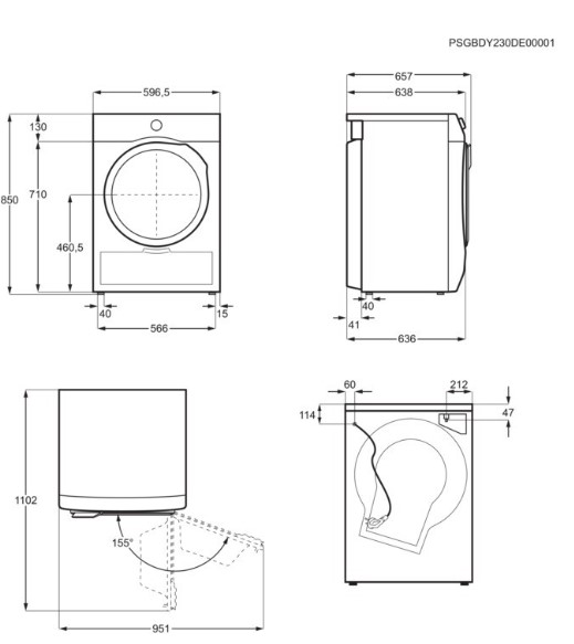 - Maße H / B / T in mm.: 850 / 596 / 657